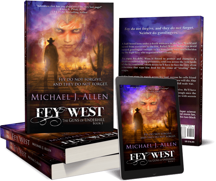 For me, that meant cracking the hard shell I’d built up over the previous decade. Rafe’s solution came much faster than my own. Finding the people I needed in my life took much longer than creating the catalysts and allies he needed. Fey West is so much more than a writing challenge that started with fairies pretending to be gods.